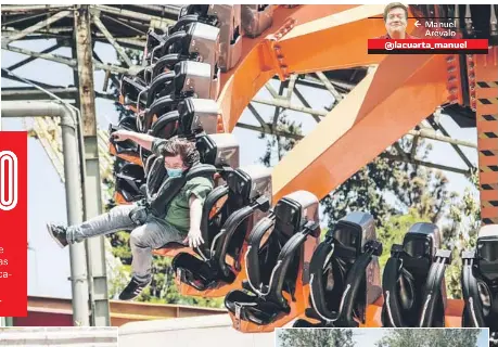 La góndola se balancea hasta dar vueltas completas para girar a 360° sobre el eje del.